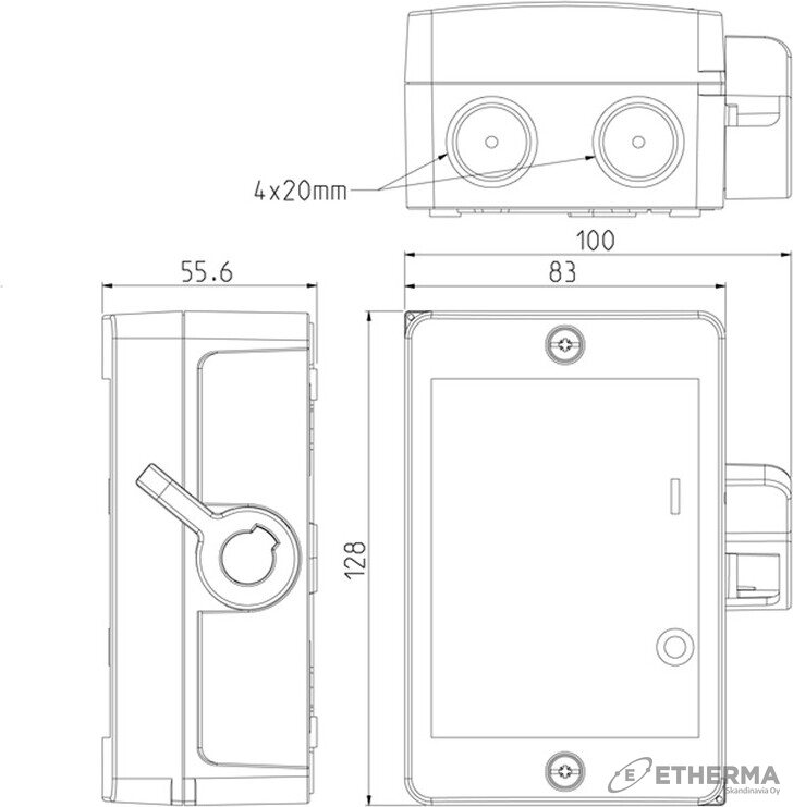 KSM 325S M1 2XM20P: Sivusta väännettävä turvakytkin, 3-napainen, Sulkeutuva apukosketin, Polykarbonaattikotelo: L83 x K128 x S55,6, Läpiviennit: 2 x M20 (7,0-13,0 mm), muovi.