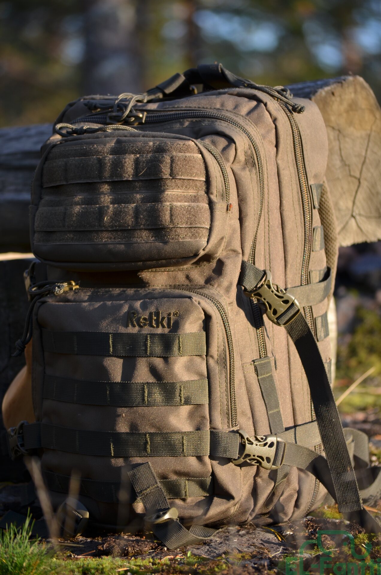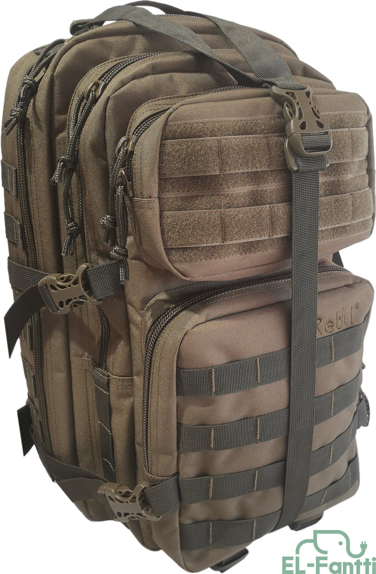 kiinnitysvaihtoehtoja lukuisia, mm. Molle-kiinnityksiä sekä remmejä