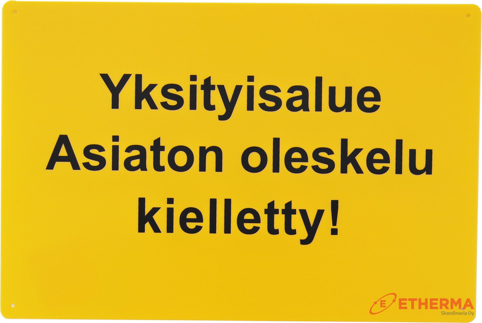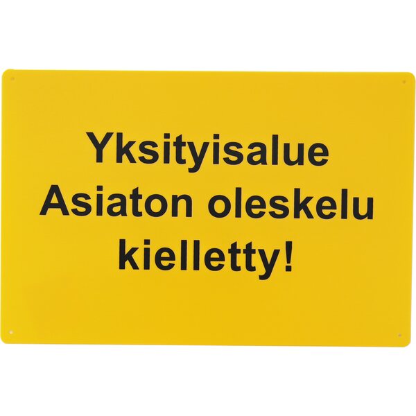 Yksityisalueesta kertova varoitusmerkki ruuvikiinnityksellä.