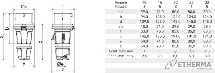 | Nimellisjännite EN 60309-2 mukaan | 400 V |