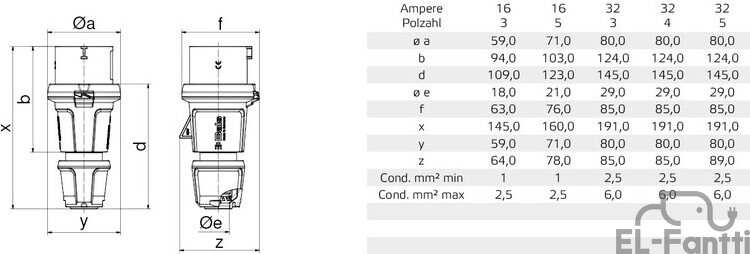 16A - 32A  200 - 240V / 346 - 415V 50-60Hz
