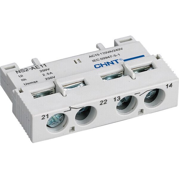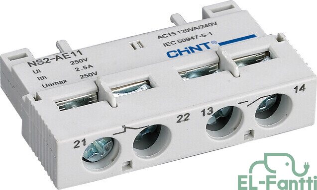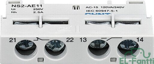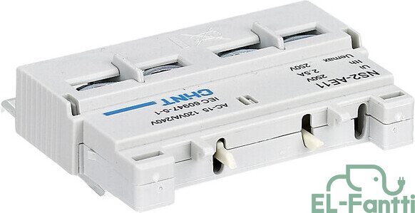 NS2-25-sarjan moottorinsuojakytkimien apukosketin. Etuasennus. 1NO 1NC.
