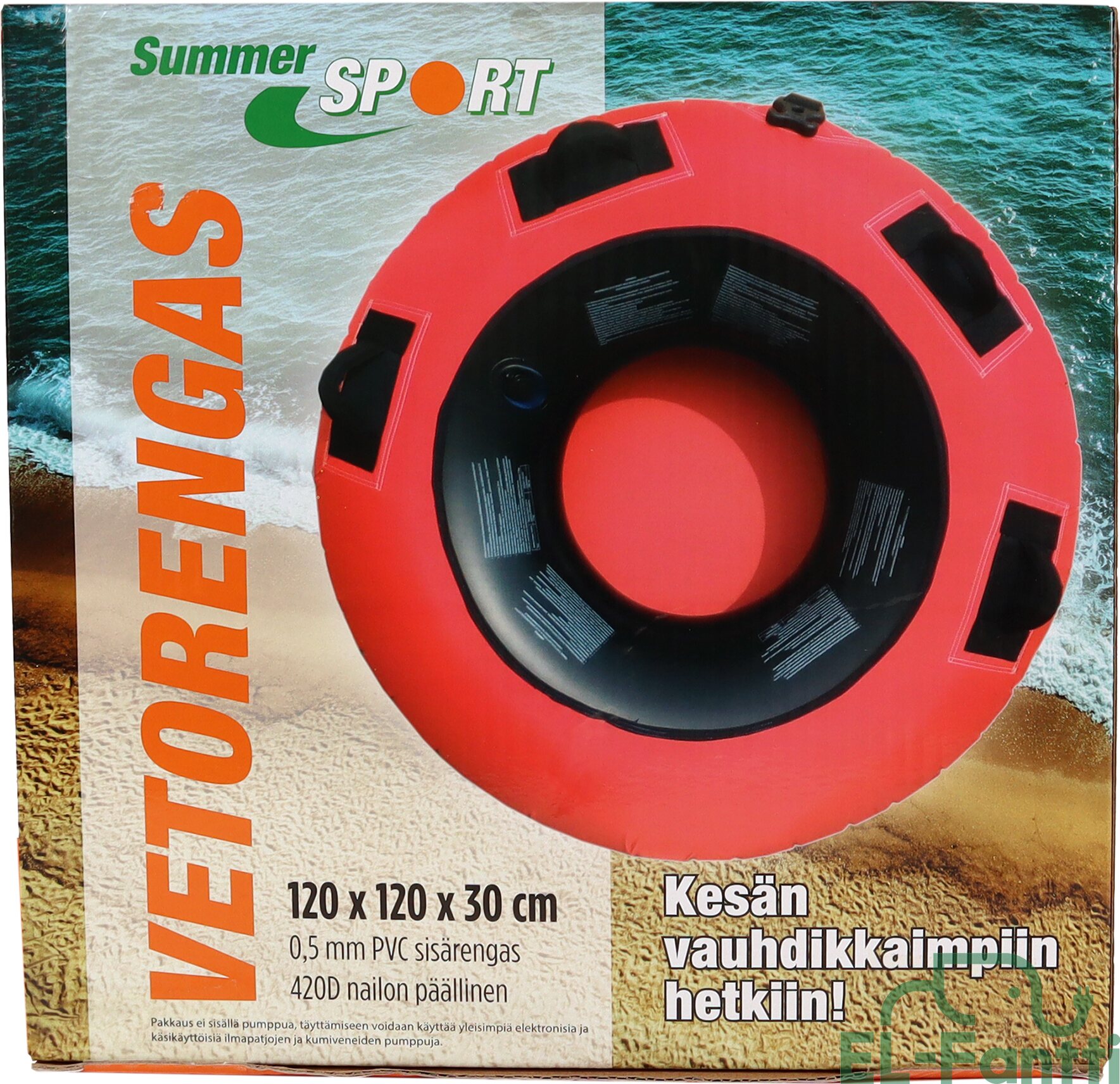 Vetorengas kesän vauhdikkaimpiin vesileikkeihin! Renkaassa on neljä kahvaa, josta porukka voi pitää kiinni tiukan vauhdin tullen. 420D nylonkankainen päällys on hyväntuntuinen ja kestävä. Kiinnitä vetorengas veneen perään ja tee vesileikeistäsi astetta hauskempia.