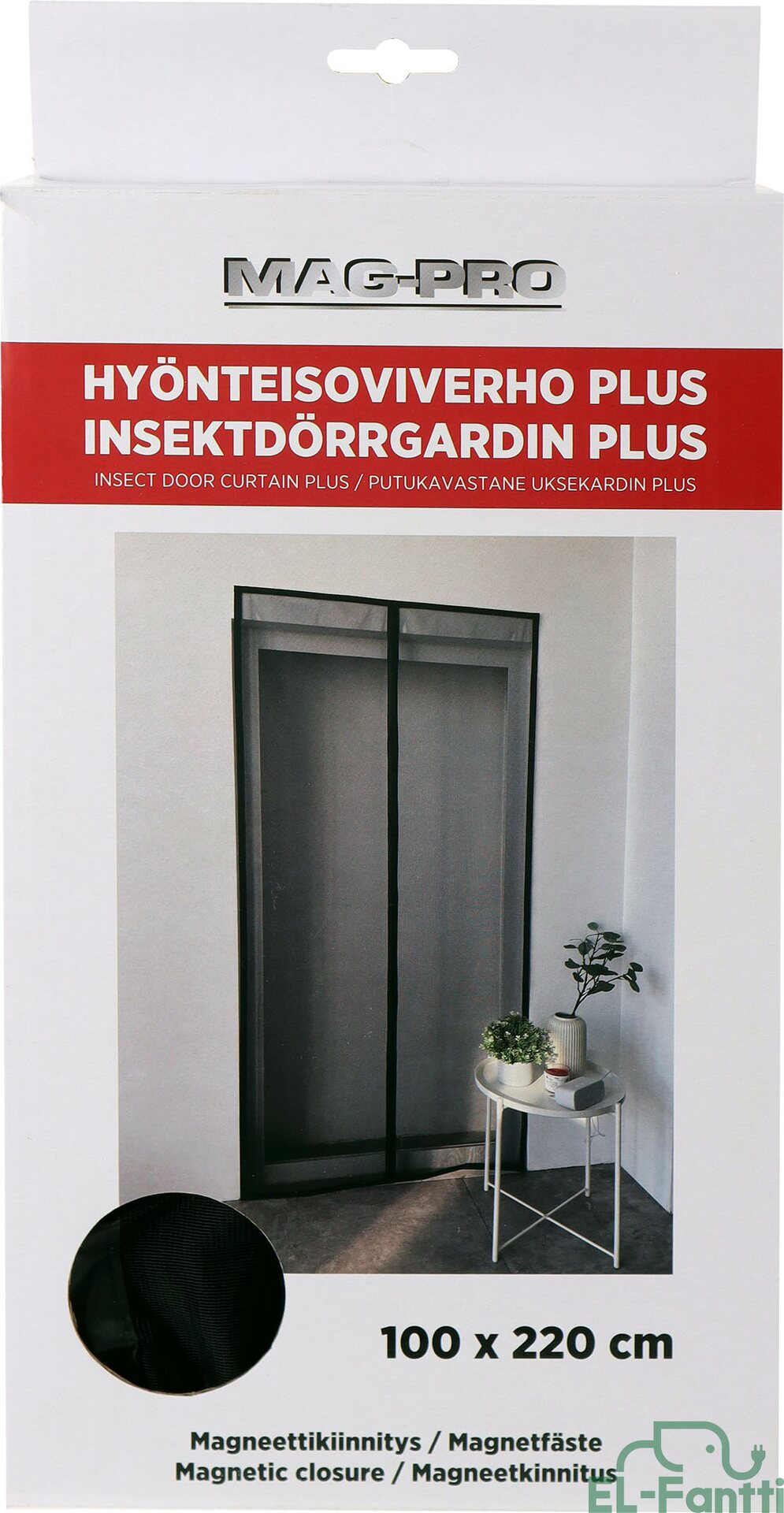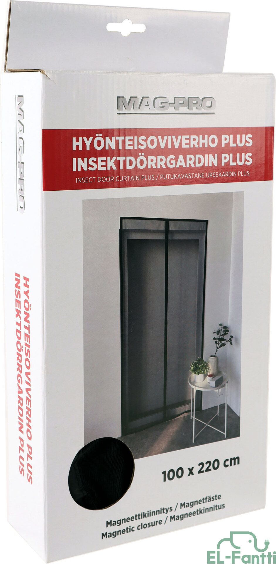 Magneetilla oleva oviverho, jolla estetään lentävien hyönteisten pääsy asuntoon. Oviaukon keskellä on magneetti, joka sulkee verhon. Kiinnitys Velcro-nauhalla karmin yläosasta ja sivuilta.