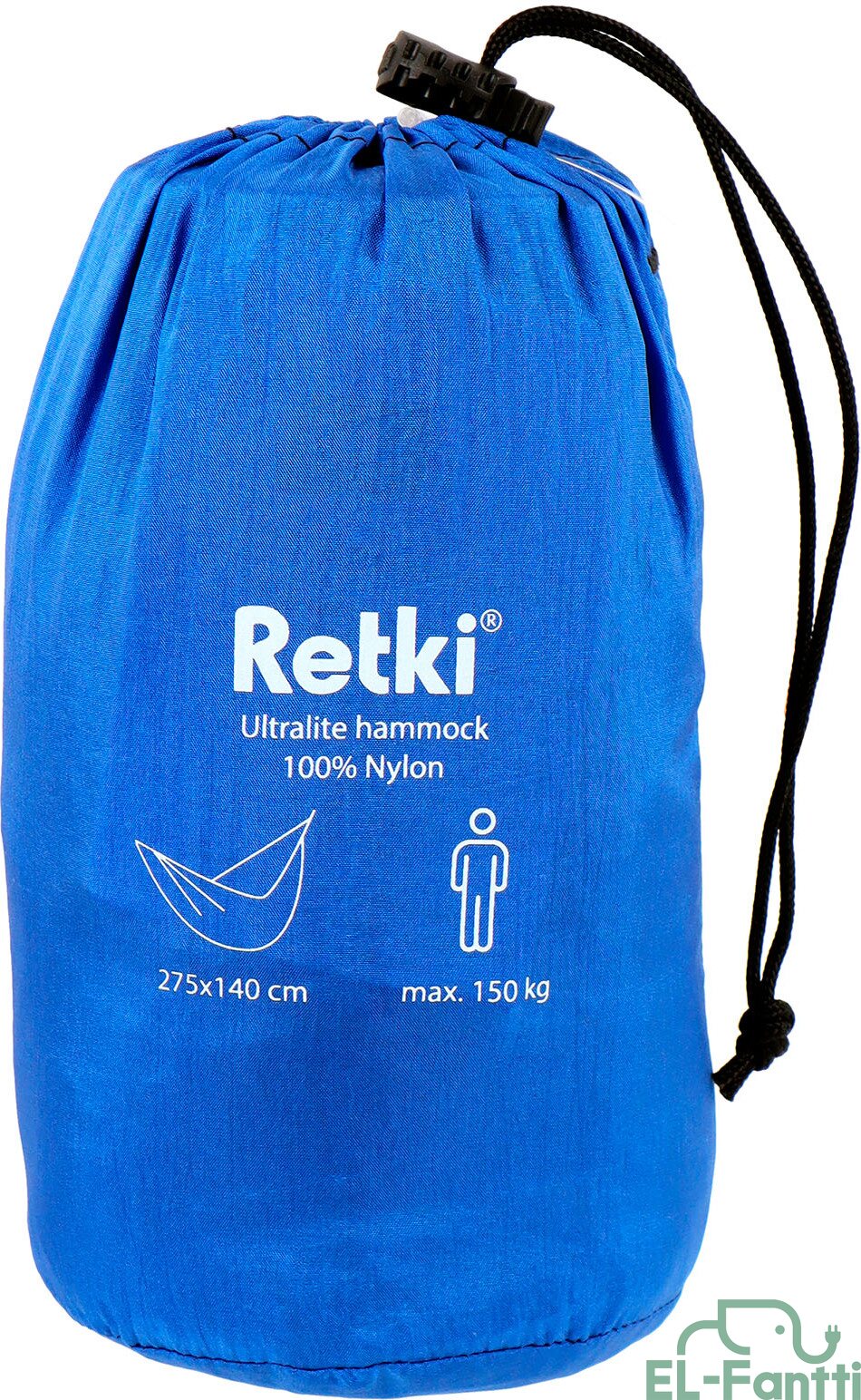 Koko: 275*140cm, paino 425g (pelkkä riippumatto)