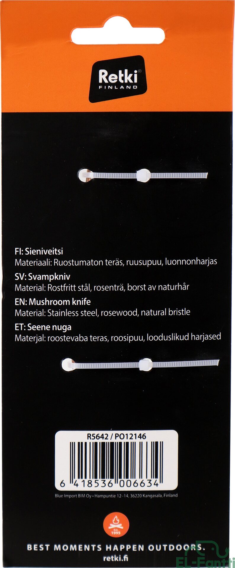 Tyylikäs puinen taitettava sieniveitsi. Kahva ruusupuuta, luonnonharjakset. Terä ruostumatonta terästä.